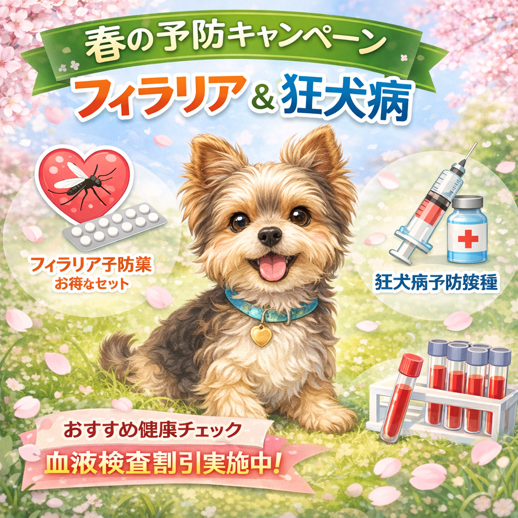 暖かい季節が近づき、フィラリア予防および狂犬病予防接種の時期となりました。